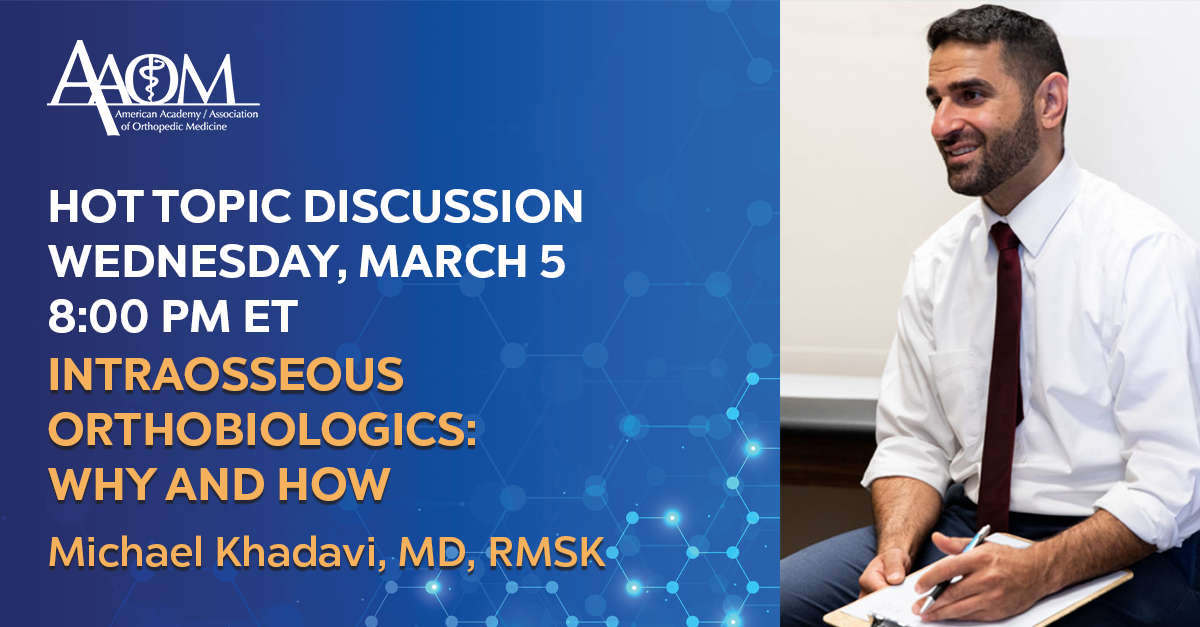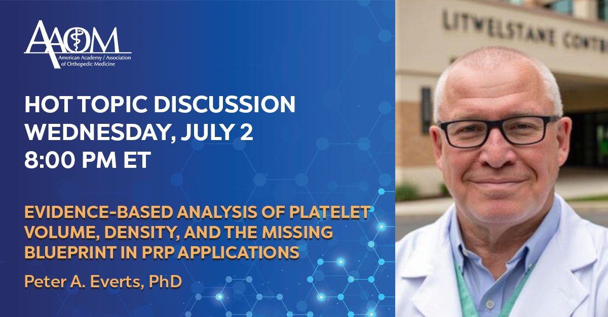 Live Hot Topic events are available to members and anyone interested in the field of regenerative orthopedic medicine. Full length recordings are available to members only. After you select a recording below, you will be asked to log in to your membership account. If you’re not a member, join today to start enjoying this benefit.